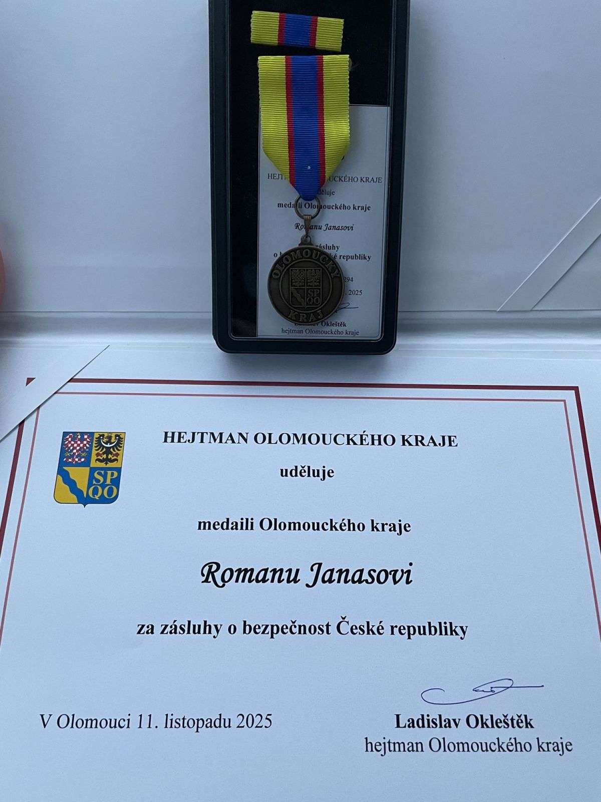 K výročí Dne válečných veteránů, který si každoročně připomínáme 11. listopadu, máme velký důvod k hrdosti i u nás v České Vsi. Na slavnostním setkání ve Vojenské nemocnici v Olomouci byl oceněn náš spoluobčan Roman Janas, správce Válečného muzea v České Vsi, který převzal medaili za zásluhy o bezpečnost České republiky .