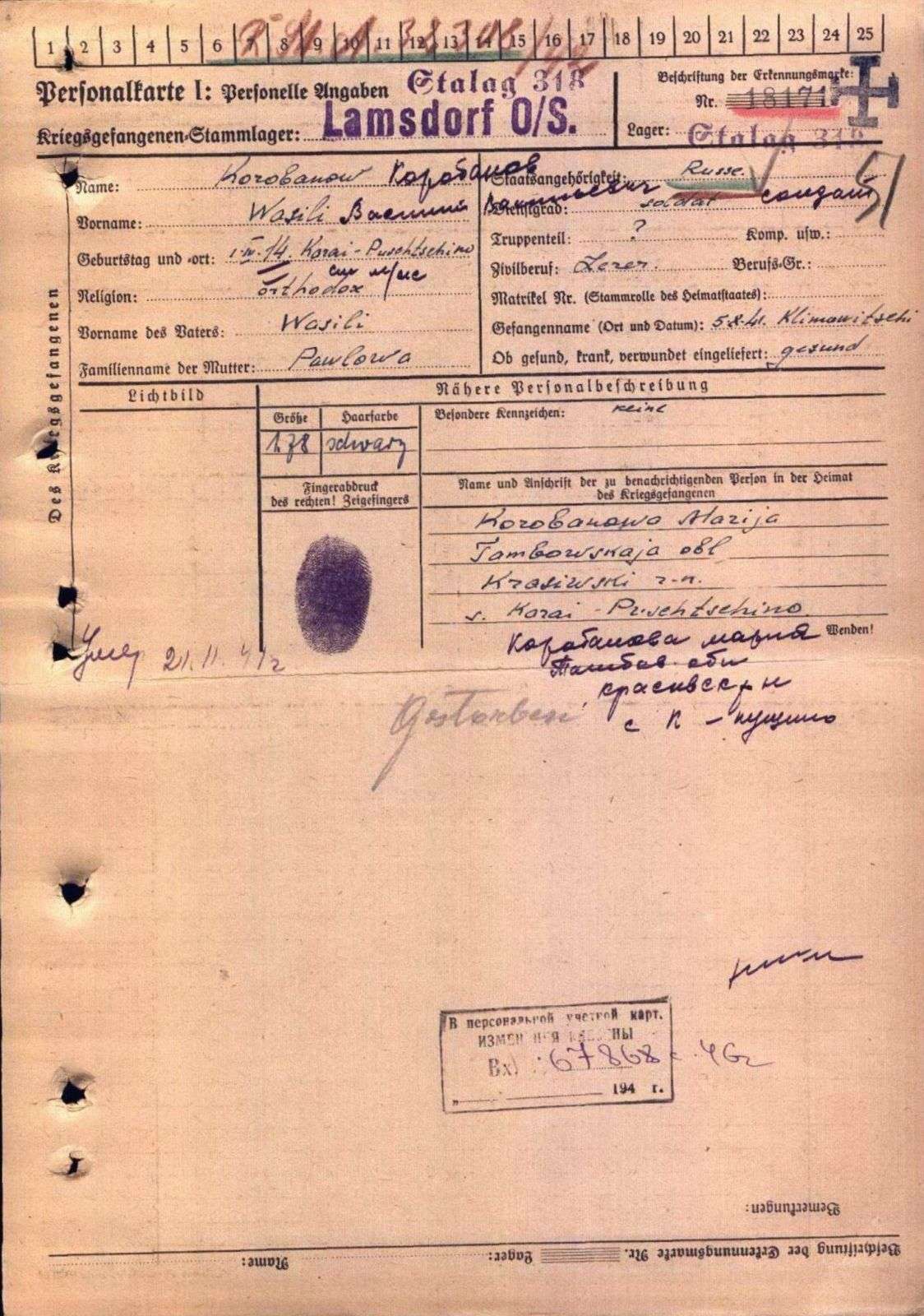 Inžavinské muzeumVasilij Vasiljevič Korobanov Když jsem 4. září 2020 odeslal email do Inžavinského regionálního muzea (foto č. 1), netušil jsem, že zrovna tento příběh hledání příbuzných válečného zajatce Vasilije Vasiljeviče Korobanova dopadne dobře. Svým emailem jsem oslovil ředitele, pana Aleksandra Aleksejeviče Jegorova. Naštěstí je stejně zapálený pro svůj koníček jako já. Zmínil jsem se o svém několikaletém hledání, popsal jsem podrobně tábor na Borku (Domašov), poslal fotografie lesního hřbitova. Pan Jegorov slíbil okamžitou pomoc. Má prosba se nejprve objevila na stránkách Inžavinského muzea a 11. září 2020 také v místním tisku. Mezitím jsem od pana Jegorova dostal fotografie a video, které natočil u památníku, věnovaného obětem Velké vlastenecké války, v místě narození Korobanova (foto č. 2 a 3). |